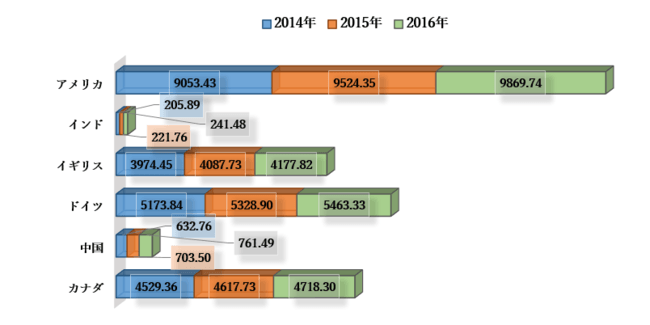 一人当たりの医療費、PPP(米ドル)– 2014-2016年