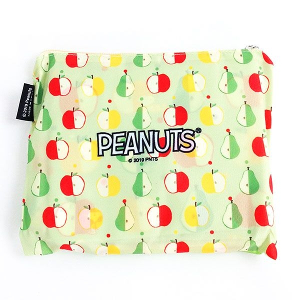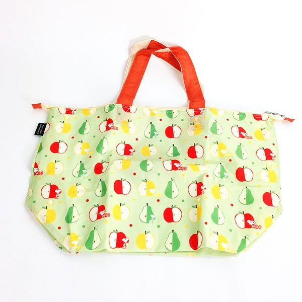 裏側はフルーツ模様にPEANUTSのロゴ。こっちもかわいいですね~。お買い物にはピッタリなデザインです。