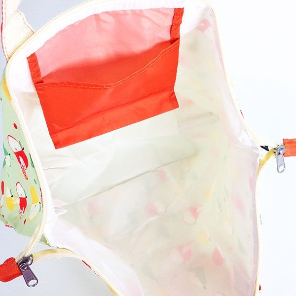 ファスナーも付いているので、安心ですね。内ポケットもあるので、迷子になりそうな小さな物は、こちらにしまえますよ。