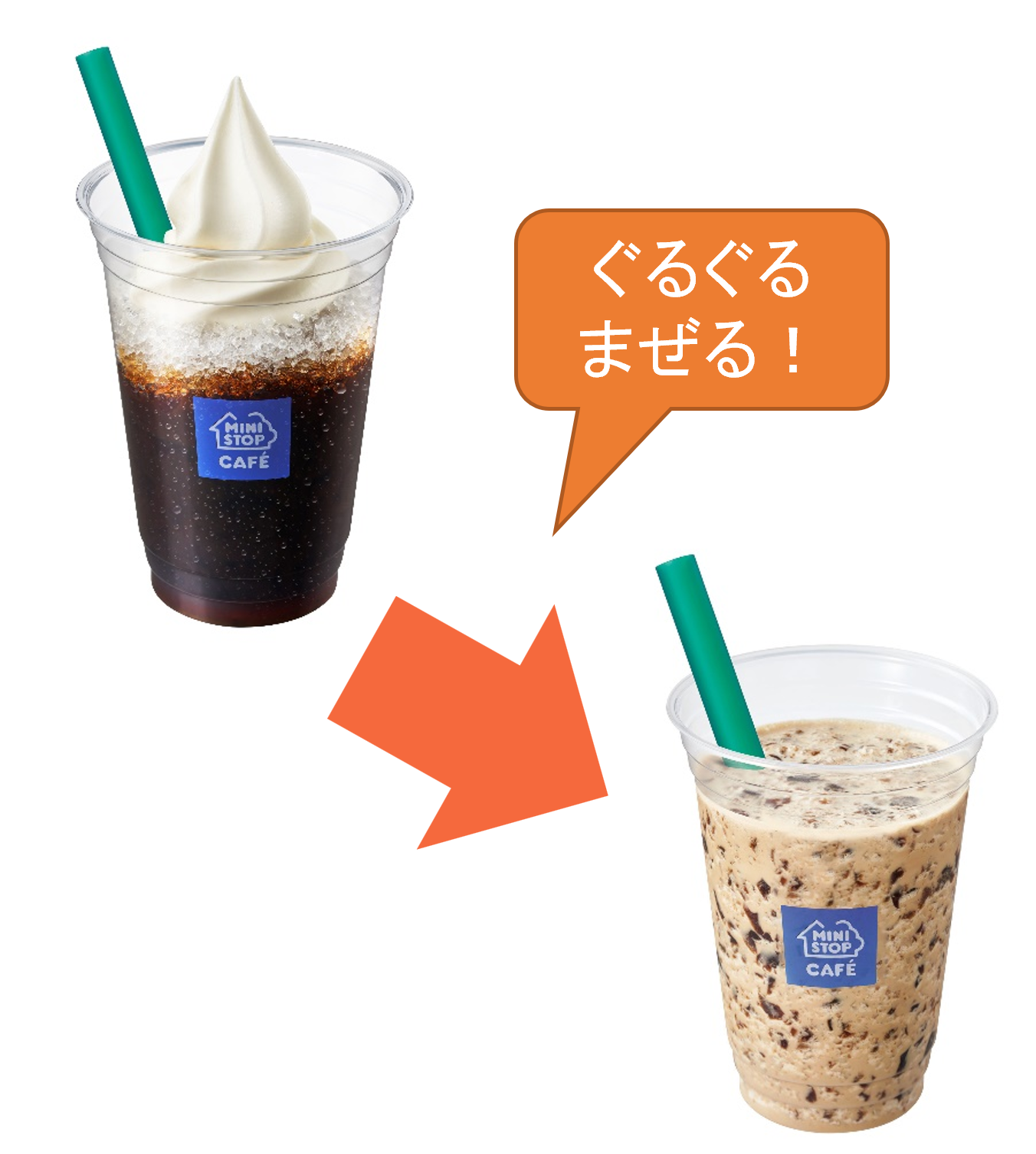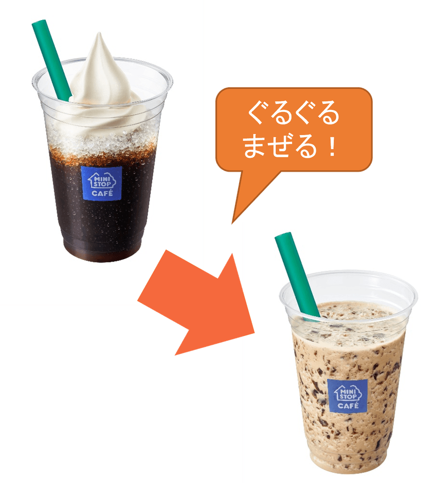 「北海道ミルクソフト」と、微細氷、コーヒーゼリーを混ぜ合わせることで、フラッペ風に仕上がるミニストップならではのドリンクスイーツです。