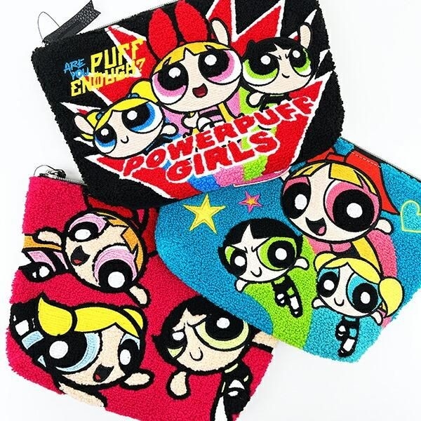 レトロな可愛さで人気のアニメ『パワーパフガールズ 』グッズに、ふわふわの見た目とやさしい手触りが魅力的なサガラ刺繍のポーチが仲間入りしました。ブロッサム、バブルス、バターカップのキュートなデザインポーチが楽しく元気な毎日を届けてくれます。