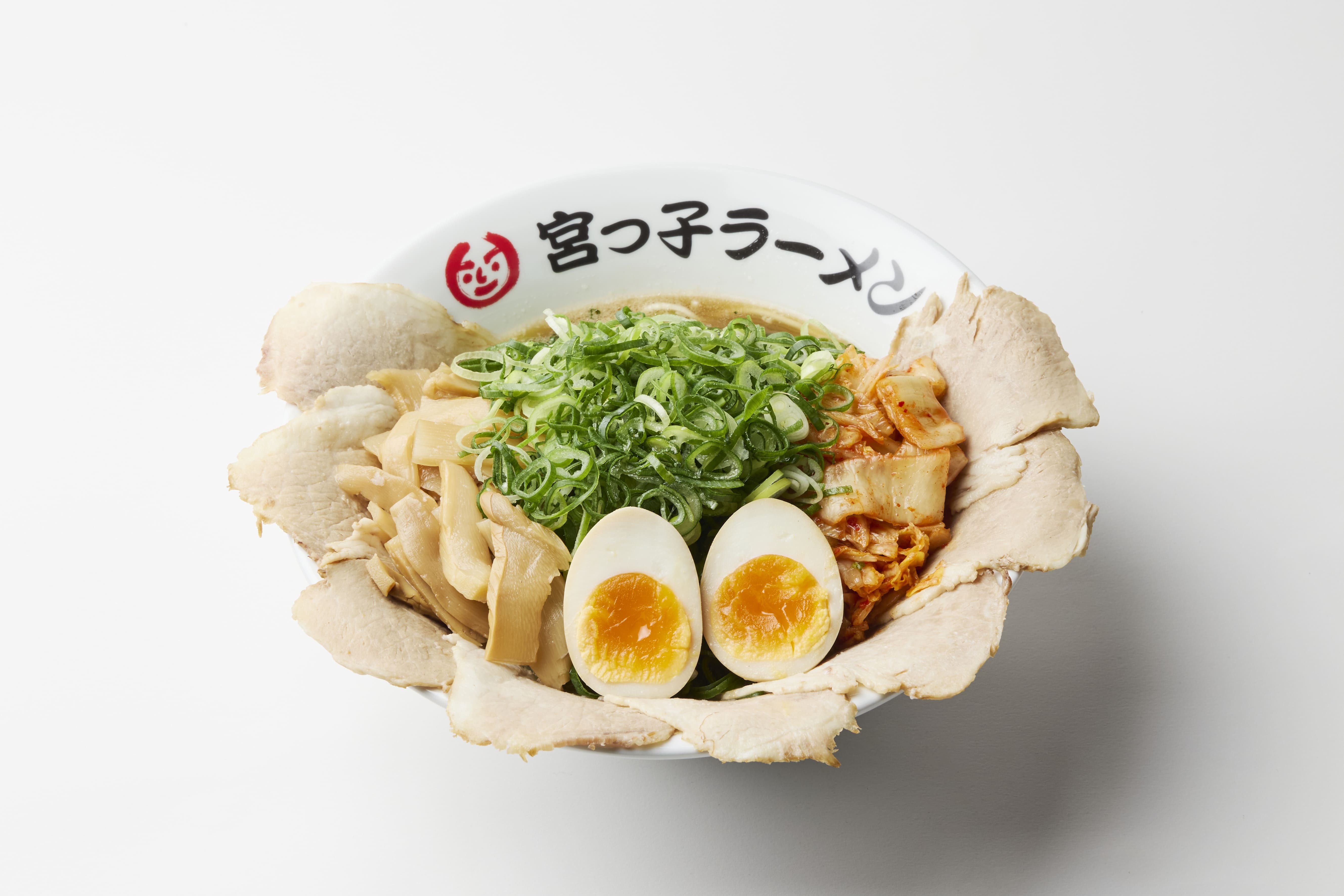 看板メニューの「宮っ子ラーメン」は、厳選した豚肉と小豆島醤油の旨味を凝縮したスープに、特注の中細ストレート麺を合わせ、柔らかく仕上げた薄切りチャーシューと青ねぎをたっぷりとトッピング。お客様からは「毎日食べても飽きない」「がっつりしているのにあっさり」「“これでいいんだよ”と思えるラーメンNo.1」といったお声を多数いただいております。