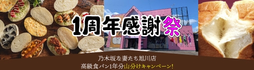 高級食パン1年分山分け! 北海道高級食パンの代名詞「乃木坂な妻たち」の「旭川店」が 開店1周年を迎えるため、10月16日から3週間、感謝祭を開催!