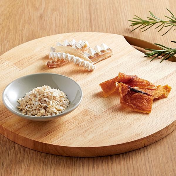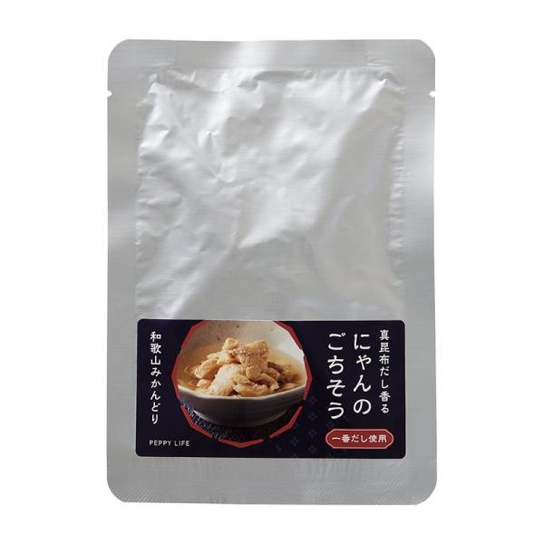 出汁煮込みで柔らかく食べやすく、北海道産真昆布と水だけでとった一番出汁は、大量生産・保管ではなく商品生産ごとに水と昆布を煮出しています。厳選素材のみで作り、塩分、化学調味料、保存料などは一切不使用。国産素材にこだわり、乾燥させたみかんの果皮をブレンドした飼料を与えすくすくと育てた健康鶏「和歌山産みかんどり」、船上活締め& 氷温保存で鮮度抜群「那智勝浦産マグロ」の二種をご用意しました。愛犬・愛猫のための毎日の美味しさと健康を飼い主様に考えていただけるよう、便利な小容量サイズで手に取りやすいお手頃価格を実現しています。