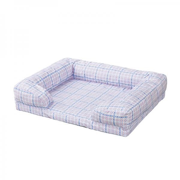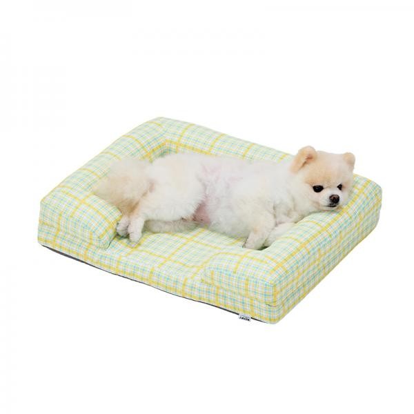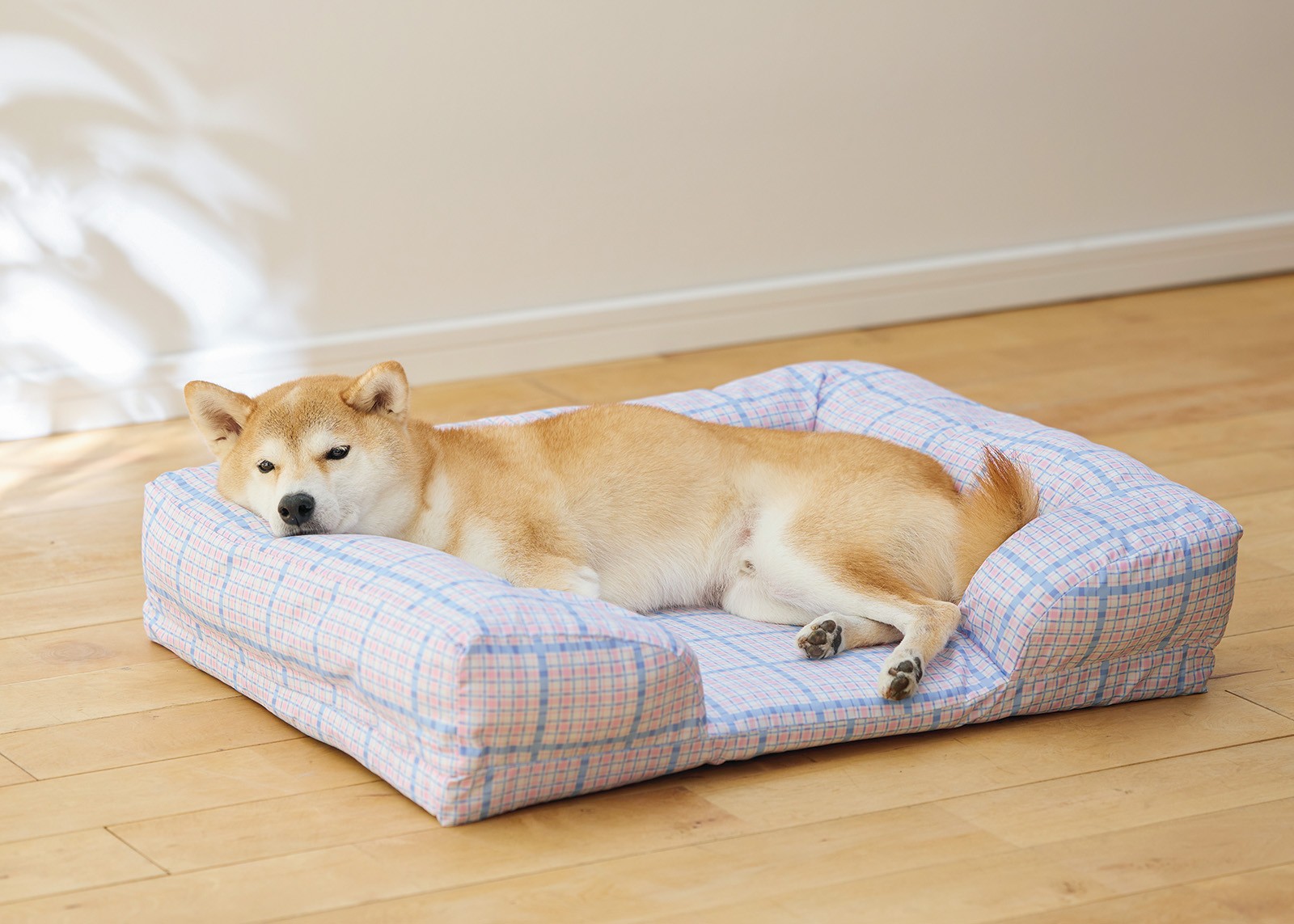 手洗いではなくご家庭にある洗濯機で洗うことにこだわった「洗える」シリーズは、糸と糸の隙間を小さくしたダウンプルーフ加工で犬猫の抜け毛が払いやすく、さらりとした肌触りで一年中快適にお過ごしいただけます。新発売の5アイテムは、2026年春夏の新柄はパステルチェック柄のブルーとイエローの各2色展開。これからの季節にふさわしい爽やかな色合いのテキスタイルです。