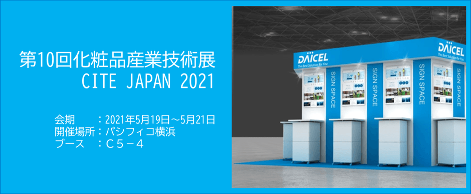 株式会社ダイセル(本社:大阪市北区)は、2021年5月19日(水)~21日(金)、パシフィコ横浜にて開催される第10回化粧品産業技術展「CITE JAPAN 2021」に出展します。