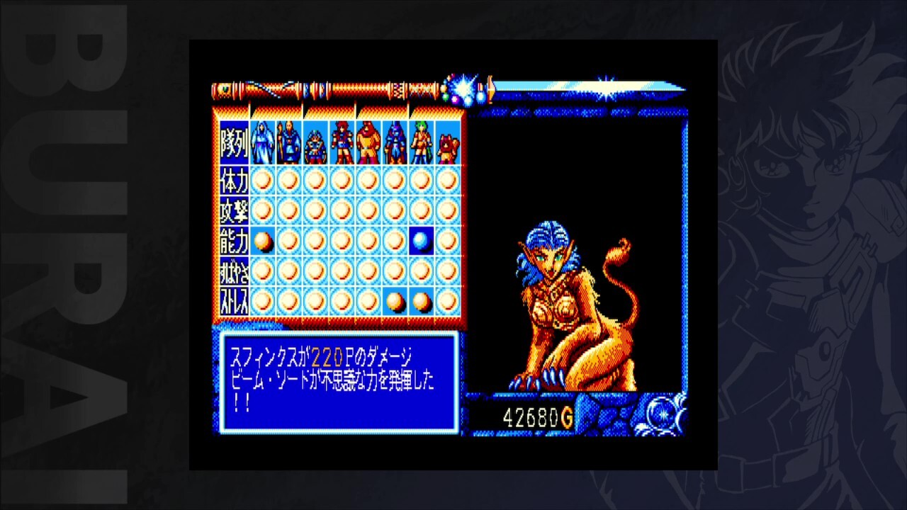 「BURAI 上巻」「BURAI 完結編」はリバーヒルソフトが当時としては異例の有名スタッフが制作に参加したビッグプロジェクトのRPGです。惑星キプロスを舞台に光の玉に選ばれた8人の主人公たちが集結し、闇の勢力と戦う。当時のキャッチコピー「敵は二億四千万、挑むは八匹の狼たち!!」はゲームの壮大さを伝えるには十分な内容でした。本パッケージでは上巻、下巻にあたる完結編をノンストップでお楽しみいただけます。