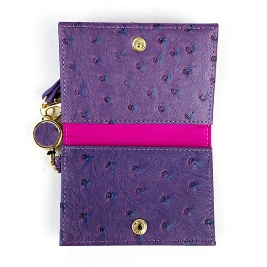 内側までオーストリッチの風合いで、カードポケットも充実しています。ショッキングピンクとの配色もきれいですよね。