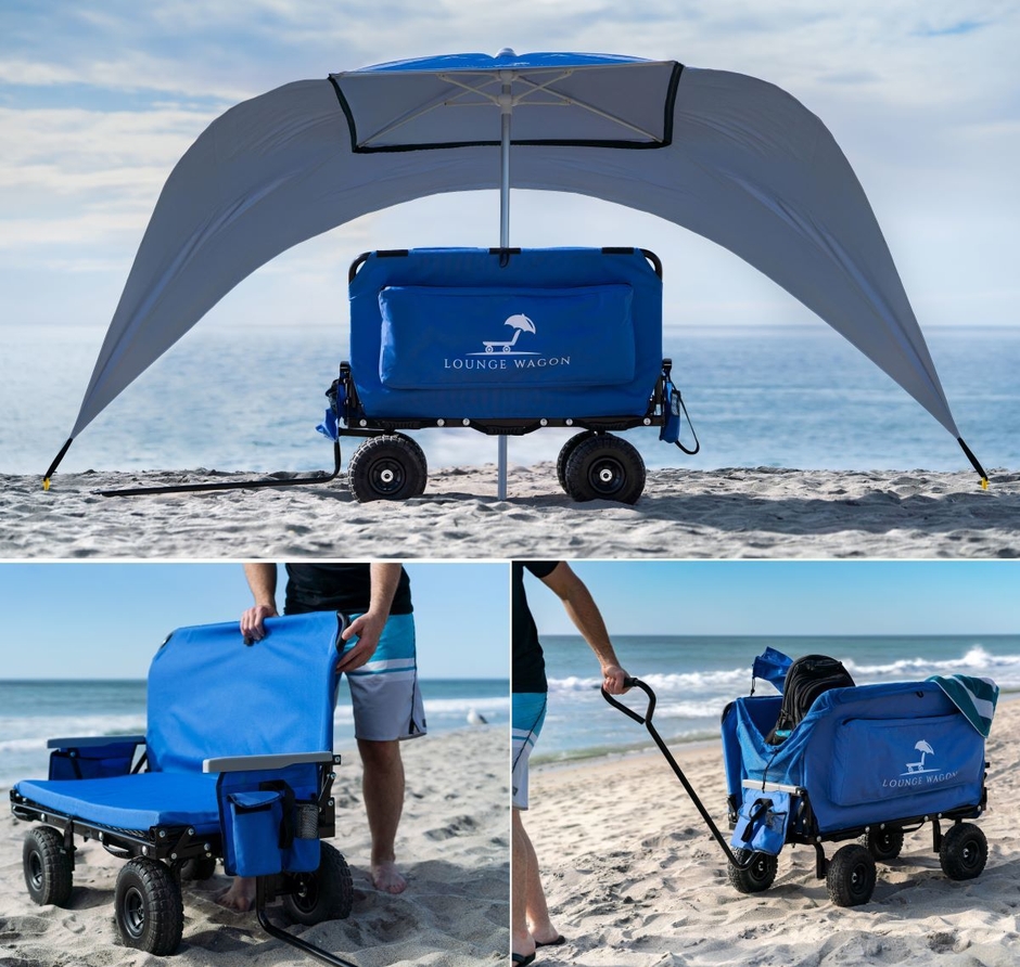 アウトドアにおいて“あったらいな”の機能を詰め込んだ3in1スタイルのユーティリティワゴン「LOUNGE WAGON」は大型の車輪搭載で砂、土、砂利、または凹凸のあるビーチや川辺の悪路でも楽に移動できます。ビーチや川辺でも大活躍し荷物が多い子供とのアウトドアでも一括でまるごと詰めこんで移動できるので便利で楽々!