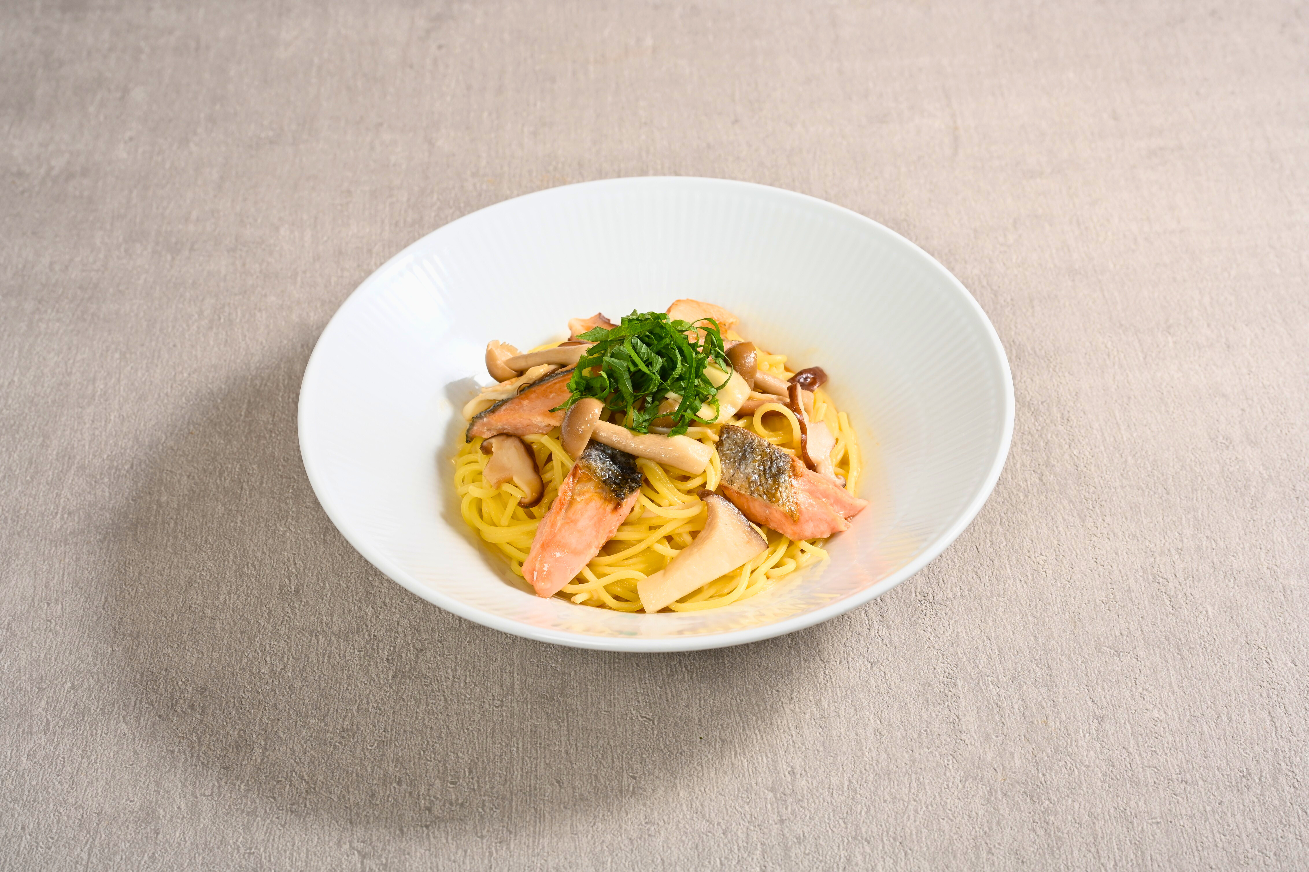現代人に不足しがちで骨の形成に必要な「ビタミンD」を効率よく補うため、銀鮭と3種のきのこをふんだんに使用しました。相性抜群の味噌とバターを合わせたコク深いソースが、香ばしく焼いた銀鮭の旨味を引き立てます。濃厚な味わいの中に大葉の香りが爽やかなアクセントとなり、食欲をそそる一皿に仕上がりました。