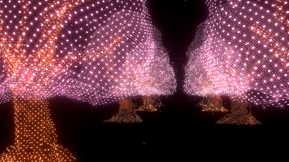 3次元空間なので、鑑賞者に近づいてきたり、鑑賞者の周囲にも作品の演出が現れます。