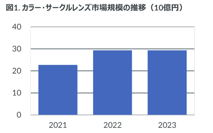 2023年のカラー・サークルレンズ市場規模は好調な前年に並ぶ290億円