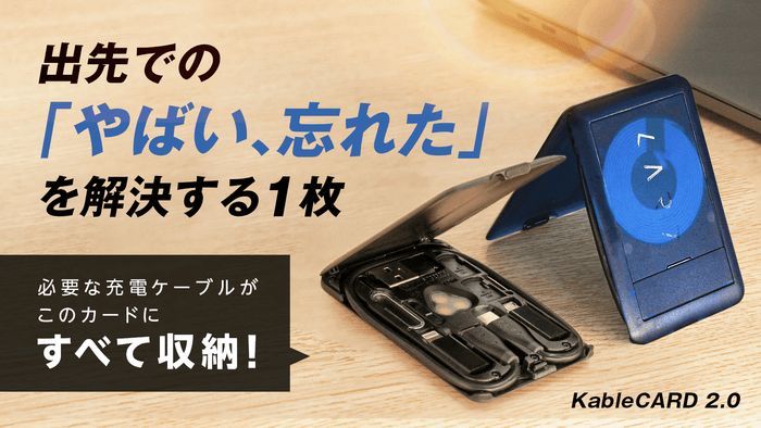 「薄く、軽く、スマートに」絡まった充電ケーブルもすっきり! 常備する多機能カード「KableCARD 2.0」の先行販売を開始 Makuakeプロジェクト開始15分で目標金額100%達成!