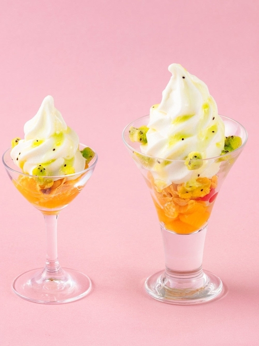 北海道十勝・新得町の北広牧場から届く濃厚なソフトクリームを、春のフルーツカクテルにふんわりとのせ、キウイソースで爽やかに仕上げました。