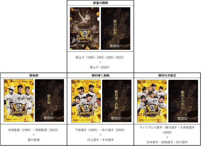 リーグ優勝の原動力となった監督・選手と歴代V戦士の勇姿が刻まれた、限定クリアファイルを手に入れて、さらなる高みへ突き進む阪神タイガースを応援しましょう!