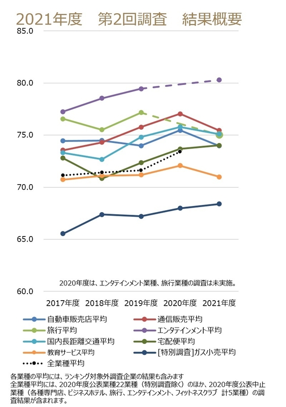 2021年度JCSI(日本版顧客満足度指数)第2回調査結果 顧客満足スコア