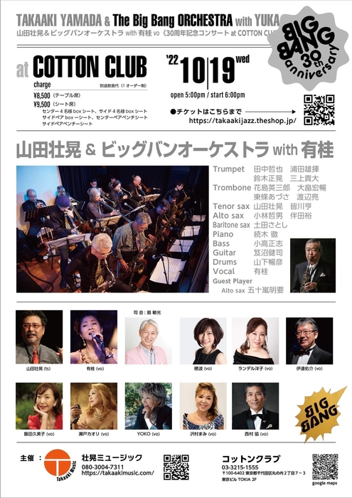 『山田壮晃 & ビッグバンオーケストラ with 有桂Vo 30周年記念コンサート at COTTON CLUB』