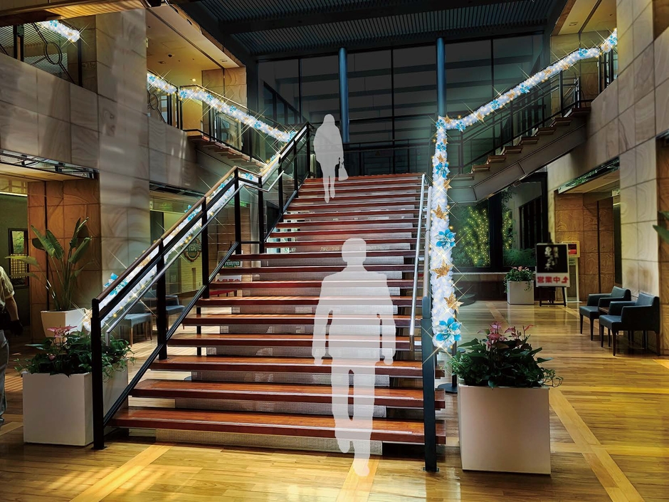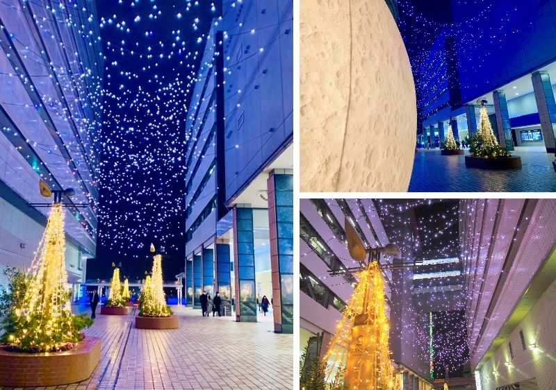 ブルーとシャンパンゴールドを基調としたイルミネーションが星のように空に散りばめられ、インスタ映えするスポットとなっております。また稀に出現する「月のオブジェ」は、宇宙にいるような没入感を体験できる、幻想的でフォトジェニックな写真を撮影いただけるため人気のレアフォトスポットとなっております。