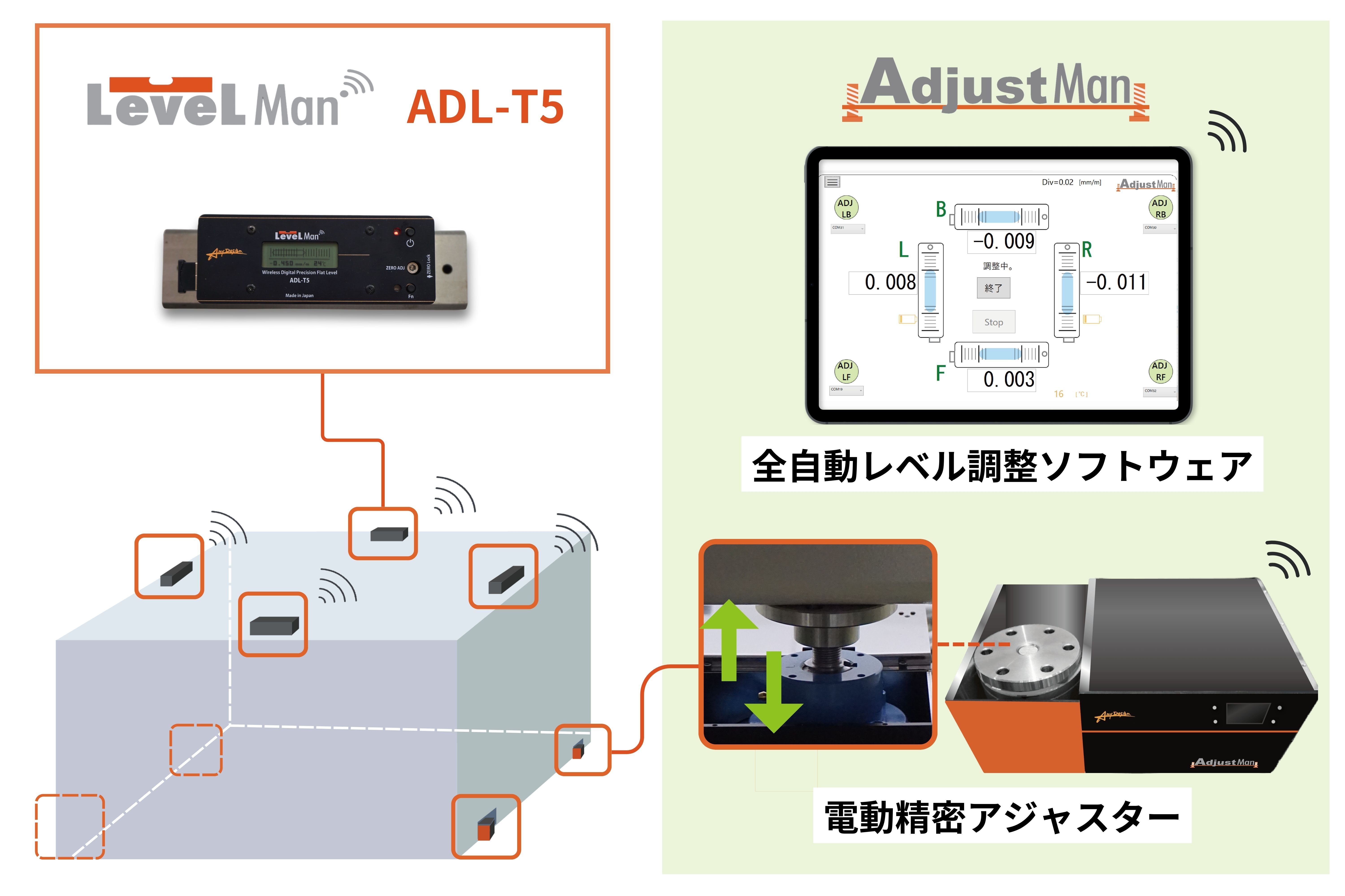 ・日本初※の全自動レベル調整システム「AdjustMan」