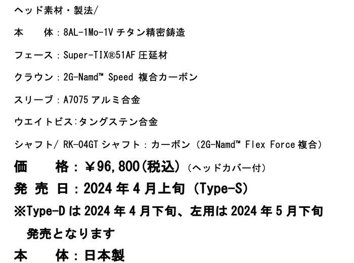 ドライバーは、新構造ストライクスピード・カーボン(StrikeSpeed Carbon)を採用。素早いしなり戻りと高い復元力を生む先進カーボン「2G-Namd™ Speed※」をソール部に複合したことで、オフセンターヒットでも高初速で飛ばすことを狙います。ソール部は従来よりもカーボン複合エリアを10%拡大し、2G-Namd™ Speedを複合したカーボンクラウンとの相乗効果で、シリーズ最高の“飛び”を実現するカーボンコンポジットドライバーと仕立てました。