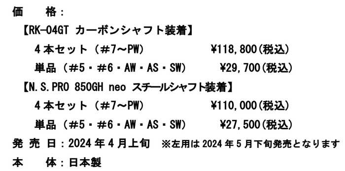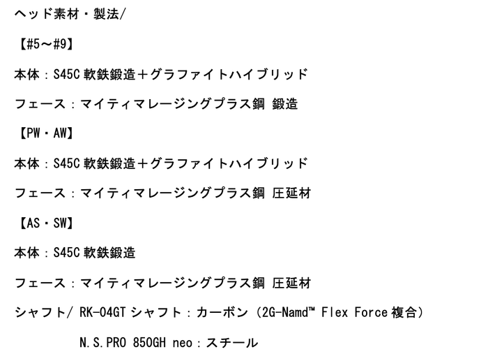 アイアンは、強度としなやかさを併せ持つ「マイティマレージングプラス鋼」をフェースに採用。さらに、カーボンパーツで補強したG-BRID (グラファイトハイブリッド)構造により、フェース部を肉薄化し反発性が向上。心地よい打球感に加え、さらなる反発性能を実現した “飛び系アイアン”です。