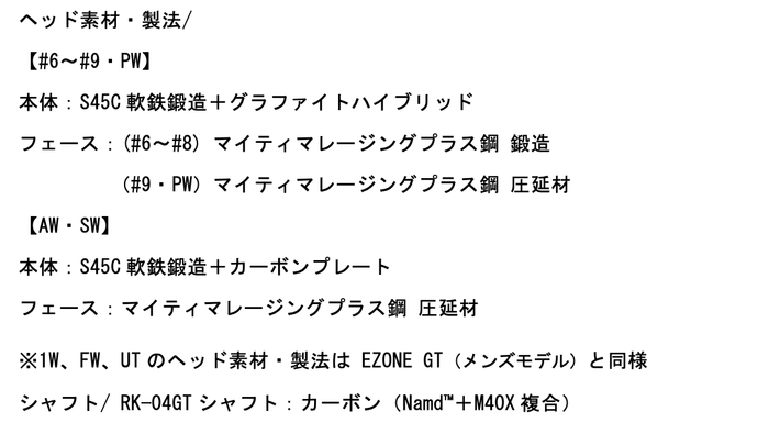 ロフト角やシャフト調子などのスペック設定を女性向け設計とした「EZONE GT WOMEN」をラインナップ。軽量で振りやすく、低ヘッドスピードでも高弾道のショットで飛距離を伸ばします。
