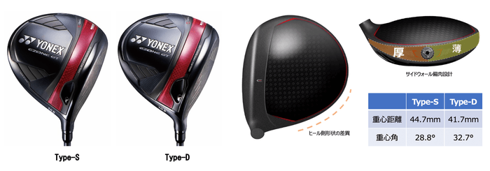 ヒール側形状が異なる2種類のヘッド形状をラインナップ。サイドウォール偏肉厚み設計を採用し、最適な重心距離を設定することで、それぞれの持ち球や理想の弾道に合わせて、最適なつかまり性能を発揮します。
