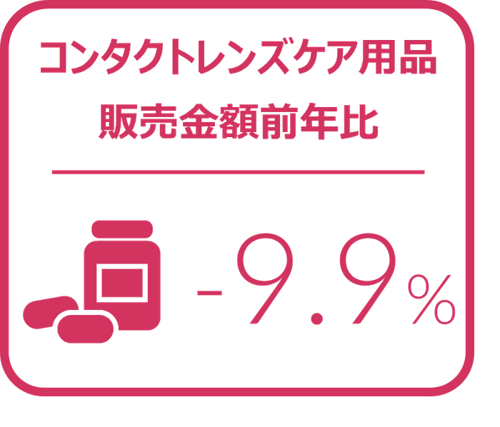 2023年第4四半期(10‐12月)のコンタクトレンズケア用品の販売は、金額前年比9.9%減とマイナスで推移した。店頭では6.9%減、インターネットは12.7%減となり、第3四半期に続いてインターネットの減少幅が店頭を上回った。