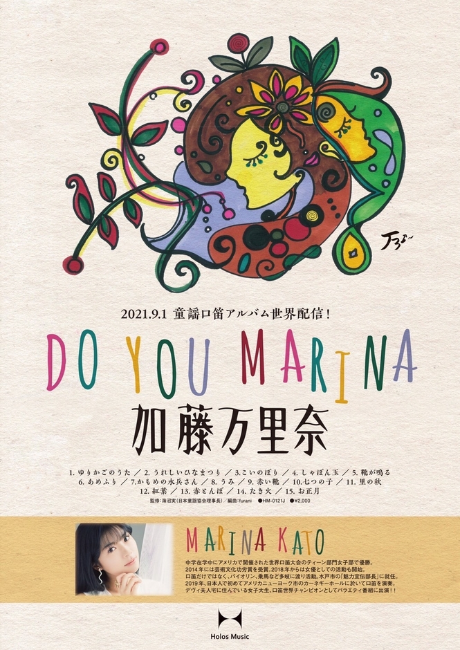 9月1日にはワールドコア株式会社が運営する音楽レーベル HolosMusicにて口笛童謡のアルバム「DO YOU MARINA」を世界配信しています。