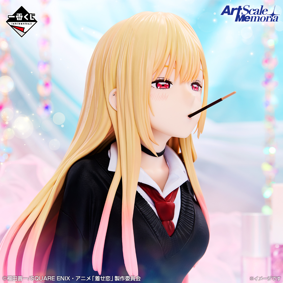 さらに最後の1個を引くと手に入るラストワン賞には、TVアニメSeason 2から「お菓子を咥えた喜多川海夢」のシーンを立体化したアートスケールメモリアフィギュアをご用意しました。ラストワン賞と同仕様のフィギュアが抽選で当たるダブルチャンスキャンペーンも実施予定です。