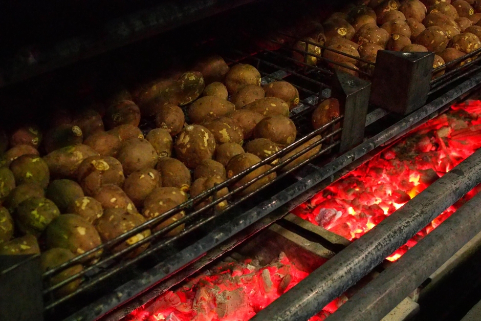 桜島溶岩プレートを使って焼いた「焼き芋」と「お米」でつくったバウムクーヘン