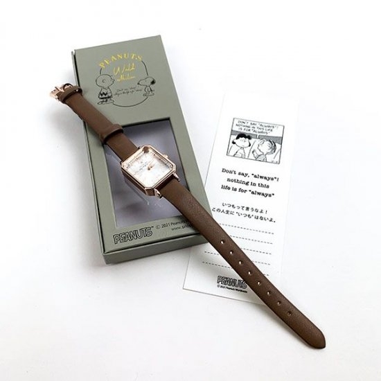 こちらの文字盤には、スヌーピー&チャーリーブラウンがデザインされています。先程と同じくピンクゴールドで、大人の女性にピッタリ。