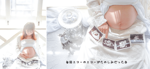 少しずつ成長していく姿が見られるエコー写真はわが子の大切な成長の記録。成長していく過程を記録してきたエコー写真をご持参いただいて、大きくなったお腹と一緒に残す方も多くいらっしゃいます。「こうやって大きくなってきたんだよ」っていつか未来のキミに見せてあげられるように…