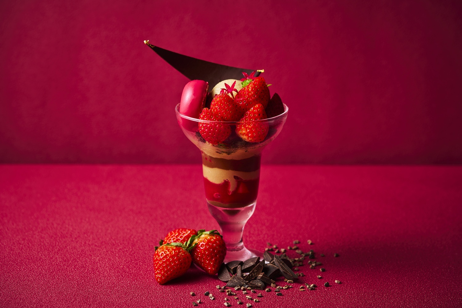 カフェメニューでは、新鮮な苺の赤が艶やかに映える季節感溢れるパフェをご提供。さらにアジア初のジェラート世界チャンピオン・柴野大造氏監修の、濃厚で繊細な味わいのジェラートからも新味が登場。弟・柴野幸介氏が手掛け、2024年に国際的なジェラートの祭典で優勝を果たした至高の一品もご用意しております。
