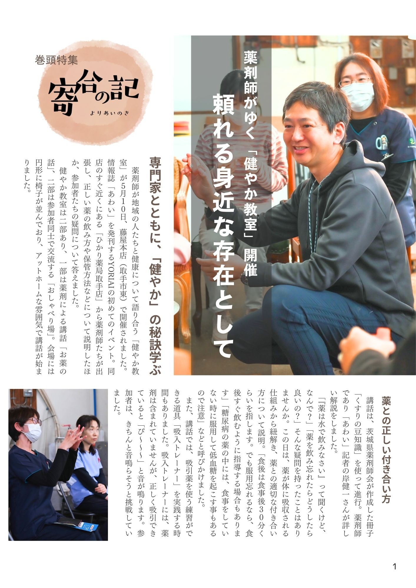 私達は、地域のご高齢者やその家族の方に医療、介護、福祉、生活の情報をお知らせするため情報誌「あわい」を発行し、地域の方々にお届けしています。昨年の4月に創刊しまして、1回に1000冊印刷し、医療機関、介護事業所、公共施設の約80か所に設置、配布しております。昨年は4回発行することができました。