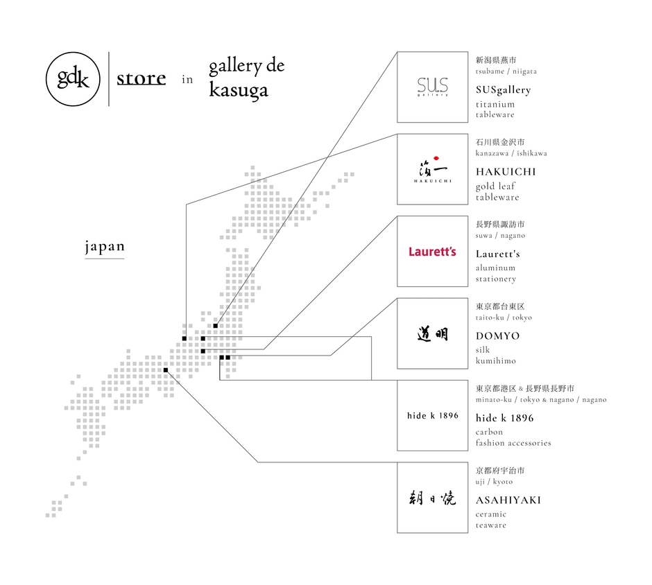 その他、「gallery de kasuga」オーナーで工学博士の「春日 秀之」が東京、京都、長野、新潟、石川…日本各地の特徴のあるブランドの中から「素材」「技術」「歴史」「美意識」の視点でキュレーションしたブランドが東京・表参道に集結します。