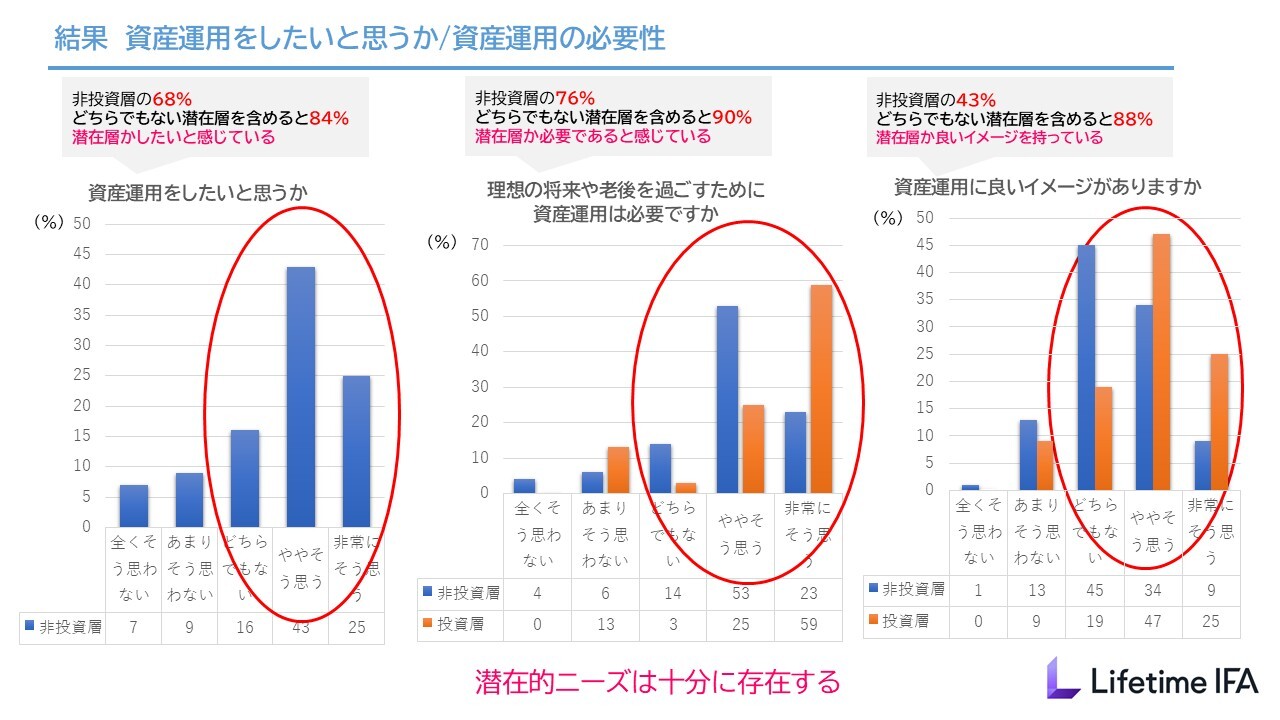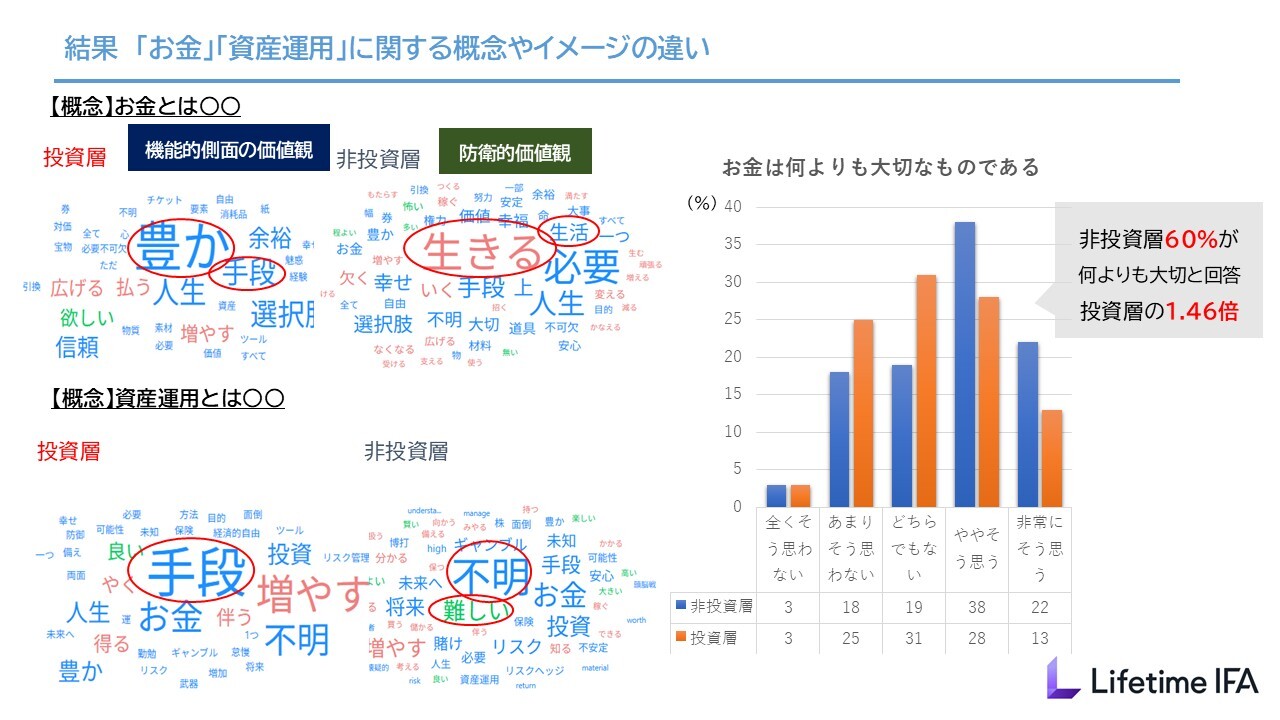 Lifetime IFA金融研究チーム(ジャパンウェルスアドバイザーズ株式会社運営/所在地:東京都中央区、代表取締役社長:八代 幹雄)は、投資をする人としない人の違いに着目し、投資をしていない人(以下、非投資層)が投資行動へ向かうにあたって必要なアプローチについて、感性工学的観点から調査研究を実施しました。