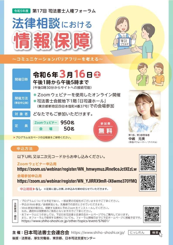 令和5年度第17回司法書士人権フォーラム 「法律相談における情報保障 ~コミュニケーションバリアフリーを考える~」を開催
