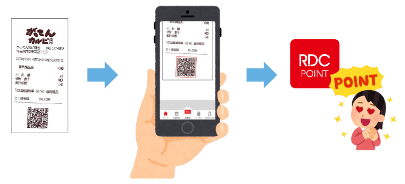 3)お客様が、本アプリでレシートのQRコードをスキャンするとポイントが付与されます
