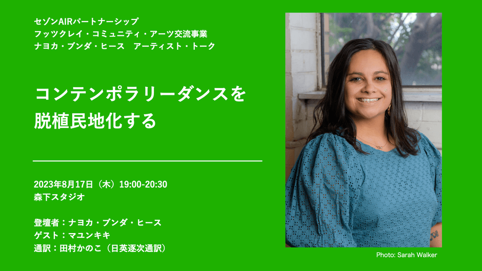 オーストラリアの先住民、Wakka Wakka、Ngugi(クイーンズランド)とBirrpai(ニュー・サウス・ウェールズ)のルーツを持つダンス・アーティスト、ナヨカ・ブンダ・ヒースによるトークイベント。