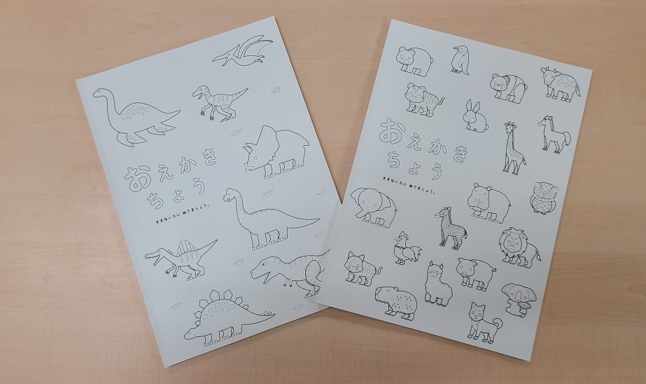 「お絵かき帳」の表紙は、クレステックのイラスト作成を担当している専門部署にて子供向けに2種類のデザインをしました。今後、表紙のデザイン変更等も計画しております。
