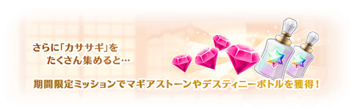 期間限定ミッションを達成することでマギアストーンや「オーバーリミッター」「デスティニーボトル」「レインボーオーブ」「マギアチップ」を獲得できます。