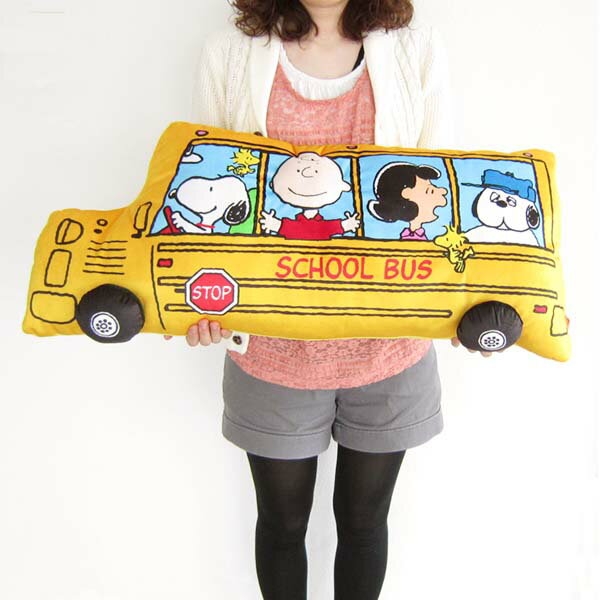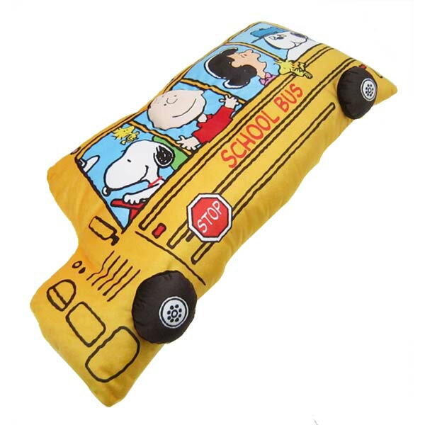 1つ目は、スクールバスのクッションです。運転手はなんとスヌーピー!ルーシーやオラフの顔も見えますね♪みんな楽しそうです。ビタミンカラーの黄色は、元気をもらえますよね。