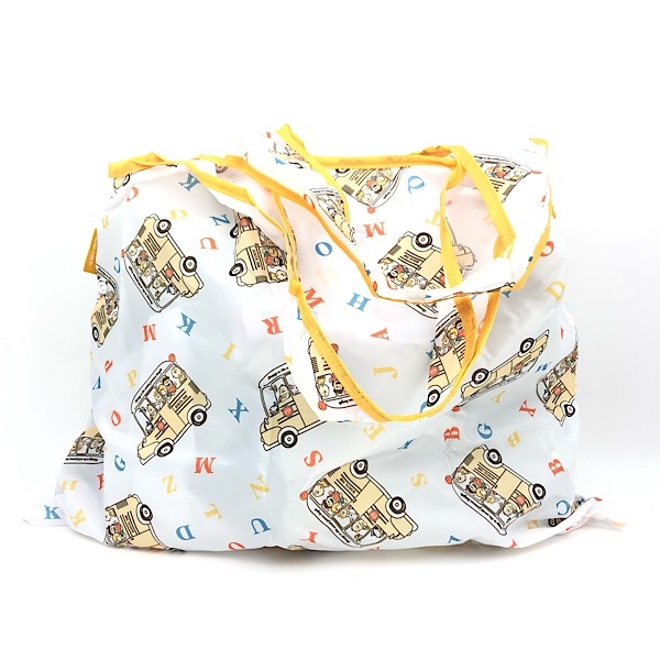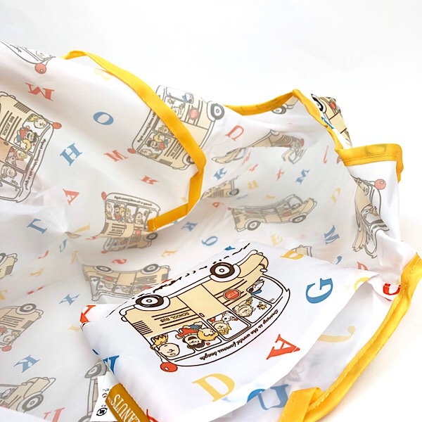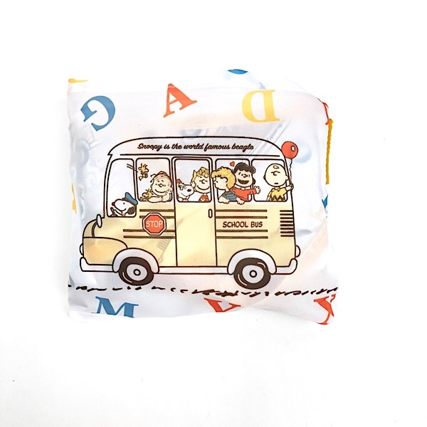 2つ目のご紹介は、ショッピングバッグです。スクールバスのデザインに、カラフルなアルファベット文字が散りばめられているんです。楽しそうなスヌーピーたちの様子が浮かびますね♪