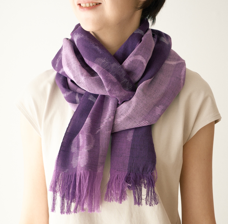 紫外線対策に伝統工芸品を! 柔らかな織りで仕上げた久留米絣(かすり)のストールが 新たに登場しました。