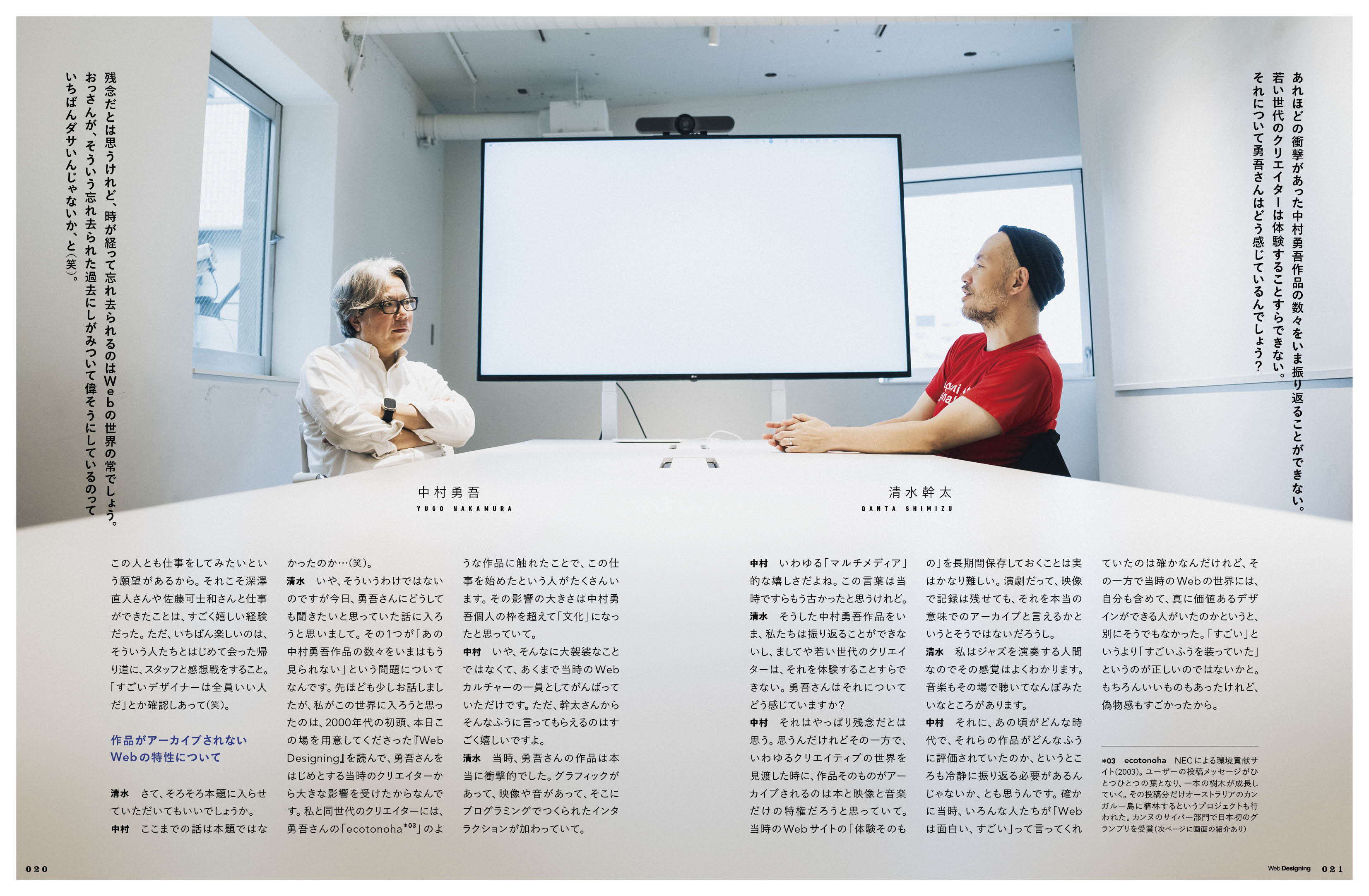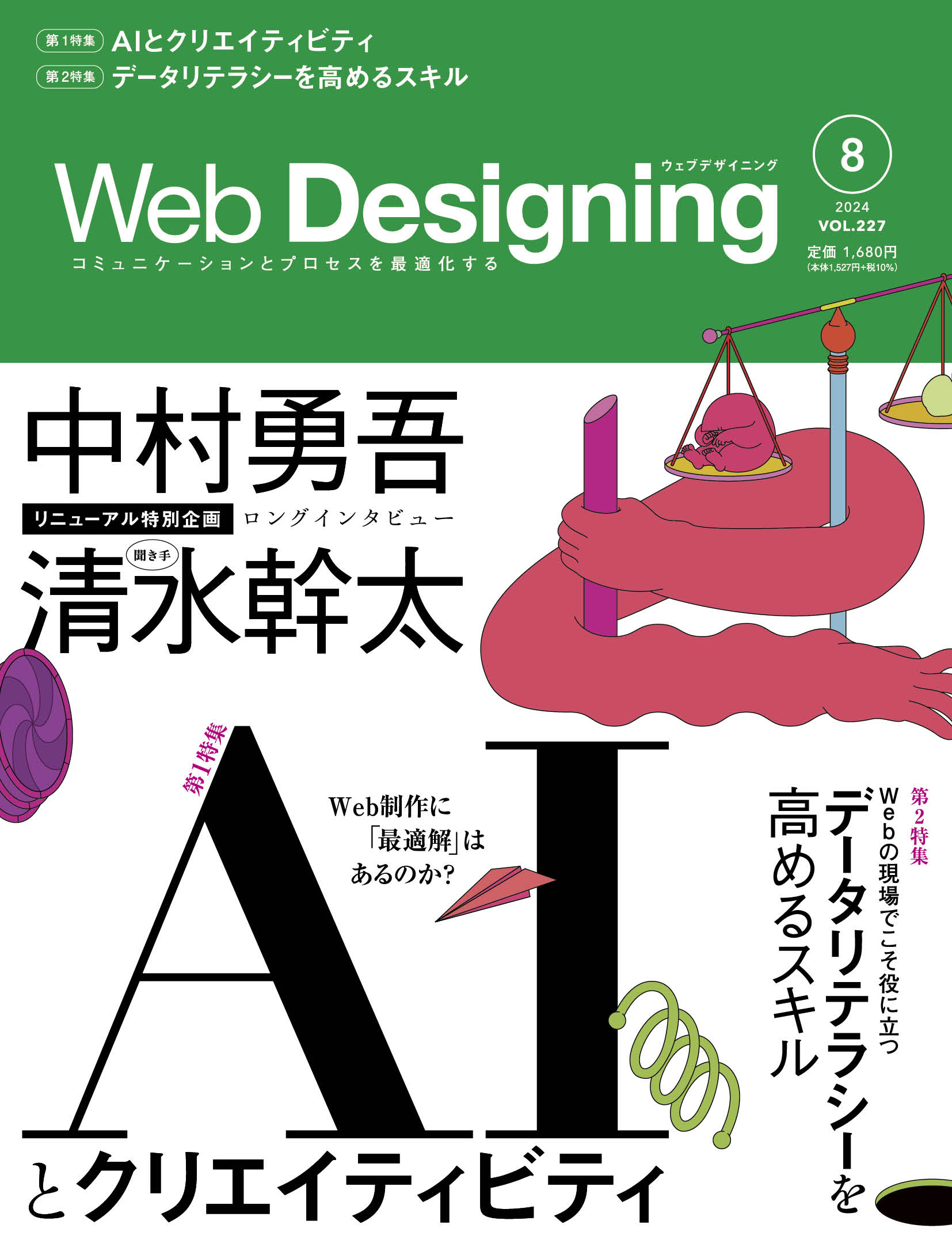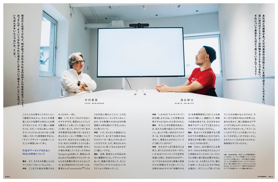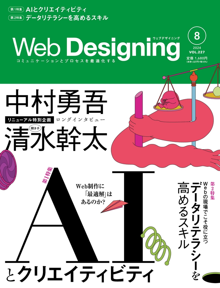 第1特集「AIとクリエイティビティ」、第2特集「データリテラシーを高めるスキル」といった読み応えたっぷりの記事に加え、Web Designingの歴史を語る上では欠かせないお二人による、リニューアル特別企画「ロングインタビュー:中村勇吾&清水幹太」や新連載をスタートしました。