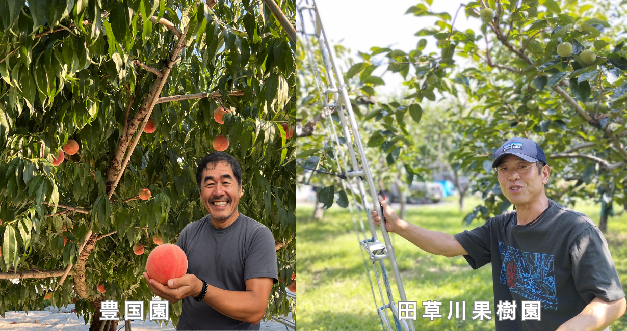今回の商品は、地域で代々果樹栽培を続けてきた「豊国園」と「田草川果樹園」の二つの農園から直接仕入れています。