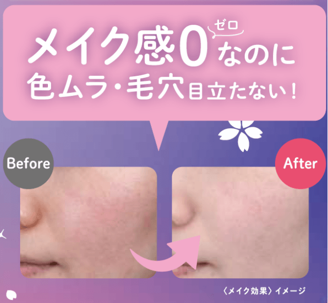 さくら色パウダーでぽわっと血色感をアップ(メイク効果による)し、きめ細かいパウダーが色ムラ・毛穴等のお悩みをカバーしてひと塗りで理想の素肌を演出します。