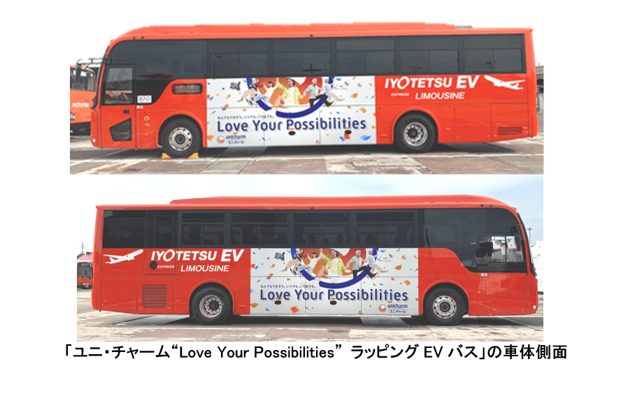「ユニ・チャーム“Love Your Possibilities” ラッピングEVバス」を伊予鉄にて運行開始 ~創業の地・愛媛県から、共生社会と持続可能な未来の実現へ~