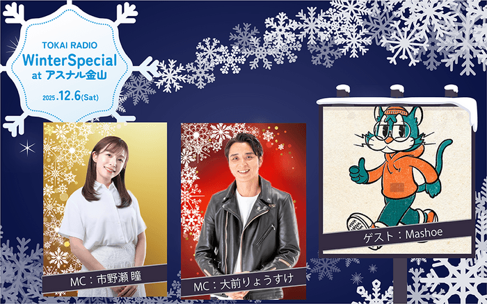 【TOKAI RADIO】大前りょうすけ・市野瀬瞳MCの公開生放送 12/6(土)アスナル金山で実施 ゲスト Mashoeのミニライブも